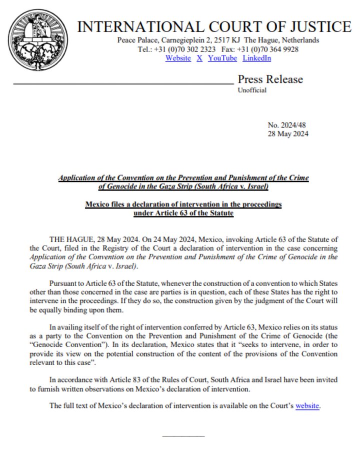 En un nuevo movimiento legal, el gobierno mexicano de Andrés Manuel López Obrador ha decidido unirse a la demanda presentada por Sudáfrica ante la Corte Internacional de Justicia (CIJ). El objetivo es determinar si el gobierno israelí de Benjamín Netanyahu, o el Estado de Israel en su conjunto, está cometiendo actos de genocidio en Gaza.