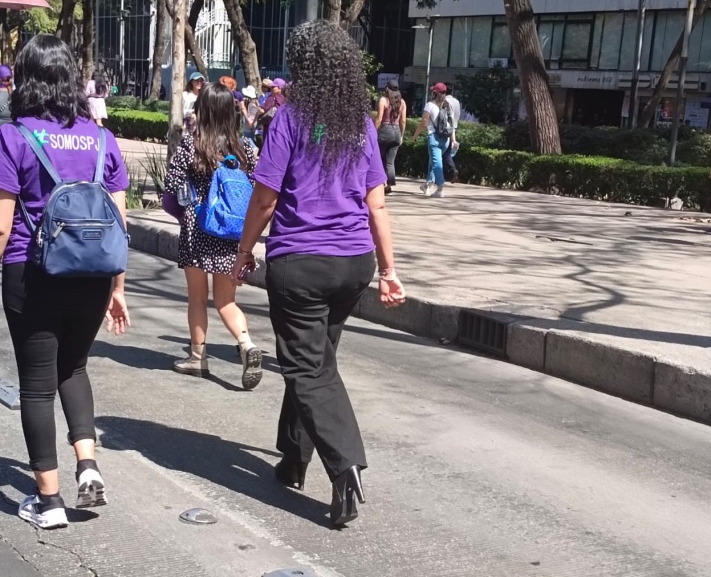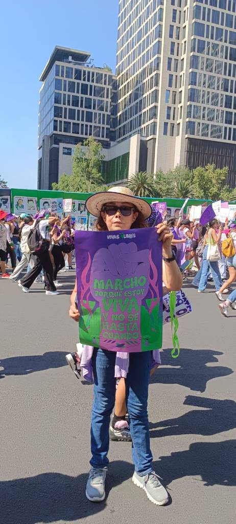 Sobre la emblematica avenida Paseo de la Reforma , cientos de miles de mujeres, vestidas en su mayoría de color morado, marchan hacia el corazón de la Ciudad.