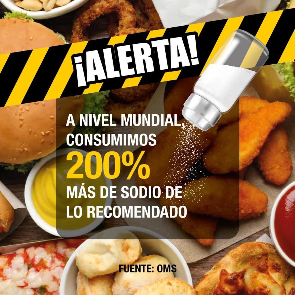 Actualmente, en el mundo, consumimos un 200% más de sodio de lo recomendado y, a ese ritmo, no se alcanzará el objetivo de la Organización Mundial de la Salud (OMS) de reducir la ingesta de sodio en un 30% para 2025, pues se calcula un consumo promedio, a nivel global, de 10.8 gramos de sal al día. (1)