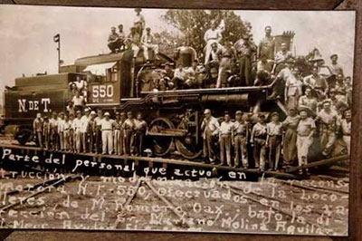 — Caserío ferrocarrilero asentado al lado de los rieles, Estación, Almacén y Talleres Generales del Ferrocarril Nacional de Tehuantepec.