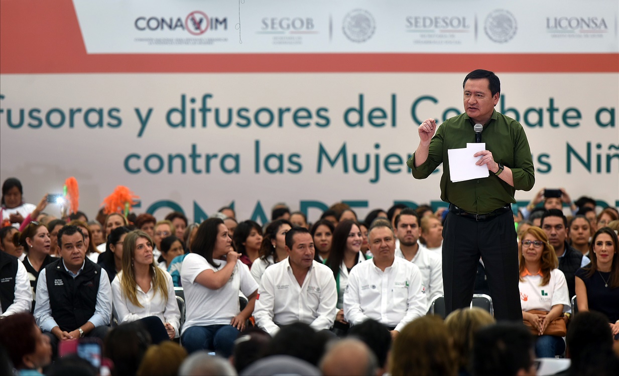 En las instalaciones del deportivo Oasis de la delegación Magdalena Contreras, el encargado de la política interior del país informó que a partir de la firma del convenio de Acciones en Contra de la Violencia Hacia las Mujeres entre esta dependencia y Liconsa, 80 mil mujeres han sido atendidas y se continuará trabajado en este tema.