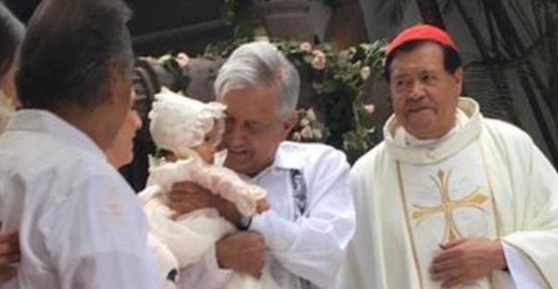 CIUDAD DE MÉXICO, 18 de marzo (AlMomentoMX).– Este domingo se difundió en redes sociales una fotografía del presidente Andrés Manuel López Obrador en un bautizo, a lado del excardenal Norberto Rivera y el empresario Miguel Rincón Arredondo.