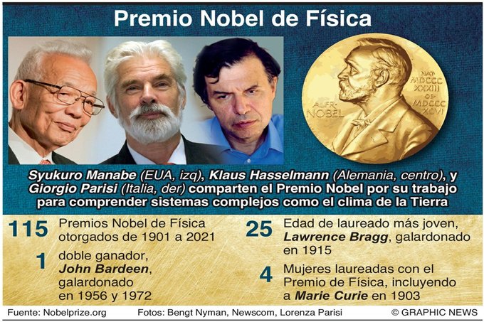 Otorgan el Nobel de Física 2021 a expertos en el clima y los sistemas complejos