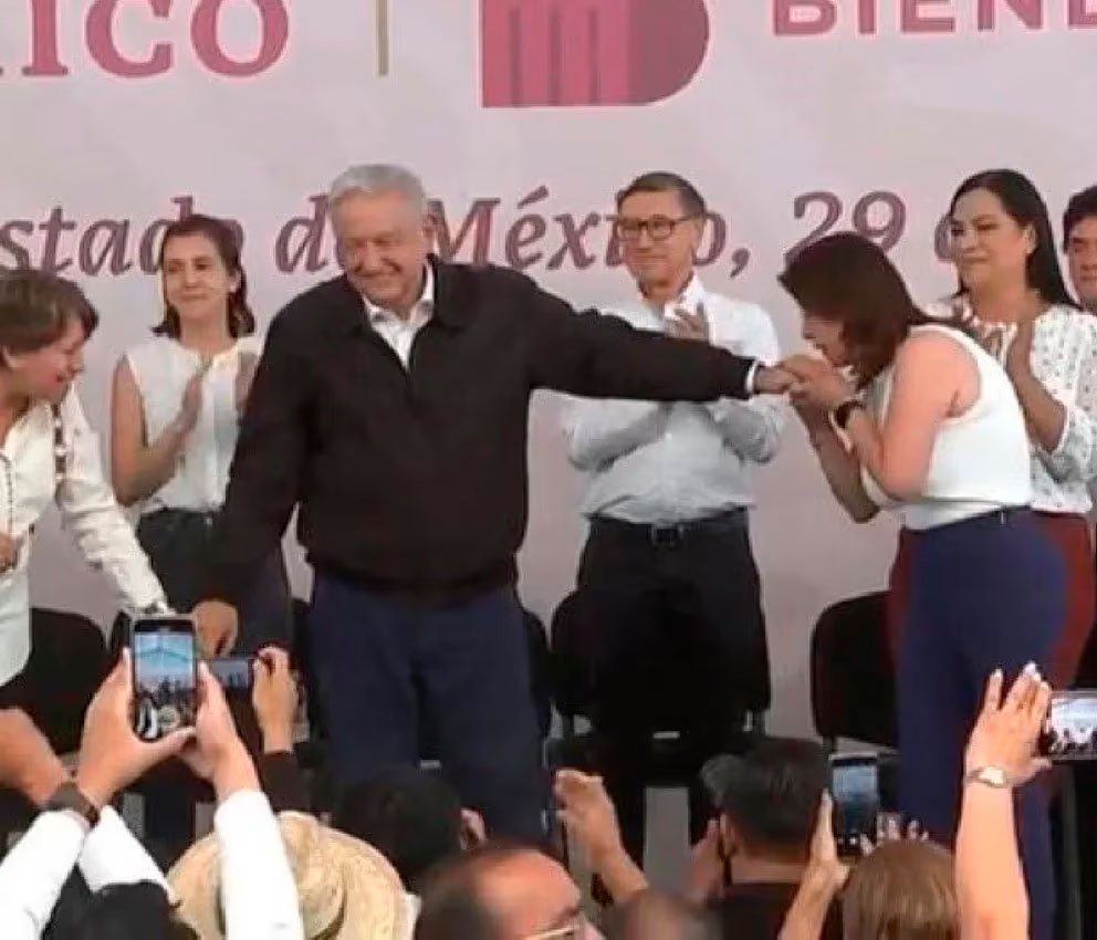 Pero al final de las arengas y luego de que todos los funcionarios alzaron las manos en señal de victoria, Gutiérrez Escalante sorprendió a las y los reporteros al reclinar la cabeza y besar la mano del jefe del Ejecutivo, mientras éste sonreía.