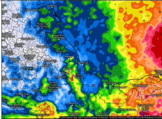 Xalapa.- El Centro Hidrometeorológico Regional Boca del Río y Servicio Meteorológico Nacional, fuente oficial del Gobierno de México informó que hay un sistema de baja presión con probabilidad de desarrollo ciclónico en el suroeste del Golfo de México. En las próximas horas se desplazará hacia el norte y noroeste favoreciendo un arrastre de humedad sobre la región.