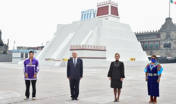 En el Zócalo capitalino se inauguró este viernes la maqueta monumental del “Huey Teocalli”, como parte del acto por los 500 años de Resistencia Indígena. 1521, México-Tenochtitlán. Esta noche se presenta el espectáculo de luces “Memoria luminosa”, que podrá ser visto hasta el 29 de agosto en 3 funciones, las cuales comenzarán a las 8:30 de la noche.