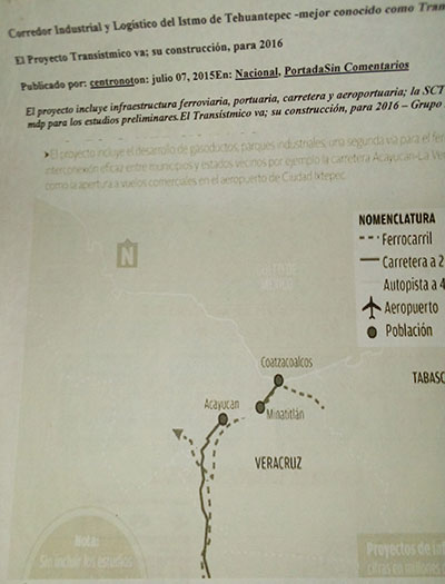 — Si, de la línea ferroviaria, el Ferrocarril del istmo de Tehuantepec para el transporte del comercio internacional de contenedores y una carretera a modo.