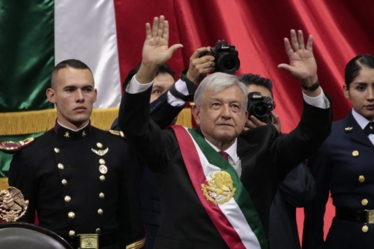 Al tomar posesión de la Presidencia de la República, el primer día de ejercicio, las cincuenta y seis etnias del país lo convocan en el Zócalo capitalino a tomar las riendas del poder nacional para ayudarlos a levantar la esperanza, esa especie humana tan despreciada. Representantes de diez millones de indígenas mexicanos le dieron el bastón de mando. El segundo en su batalla.