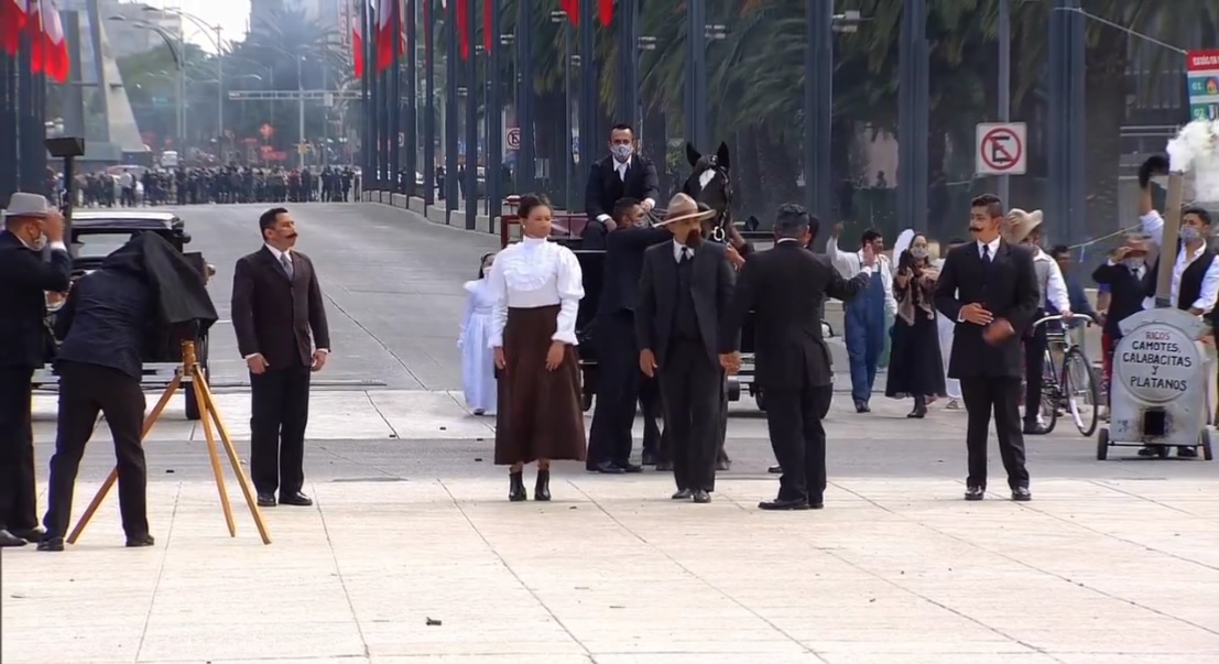 Tras ello, y con cubrebocas y sana distancia, se recrearon pasajes de la Revolución Mexicana como la entrada triunfante de las tropas revolucionarias, a órdenes de Francisco I Madero, en compañía de Sara Pérez de Madero y de José María Pino Suárez y Roque Estrada, tras la culminación de los esfuerzos para derrocar el gobierno de Porfirio Díaz.