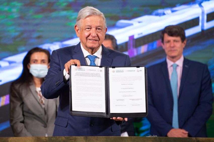 AMLO firma contrato de adquisición y construcción de vagones para el Tren Maya