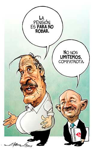 Vicente”Imbecil”fox:”¡ROBÓ,miles de millones de dolares de la venta del petróleo de “todos los mexicanos”.Acabó con millones de pequeñas empresas familiares,para introducir,negocio de los abortos bibriescas,millones de toneladas de productos chinos de pésima calidad.Dejó que martita(que fue la que “gobernó”)robara, inventando fideicomisos(con paco gil,entre otr@s)y madre y media como ROvamos México.Etc,etc….Habla Ingles.
