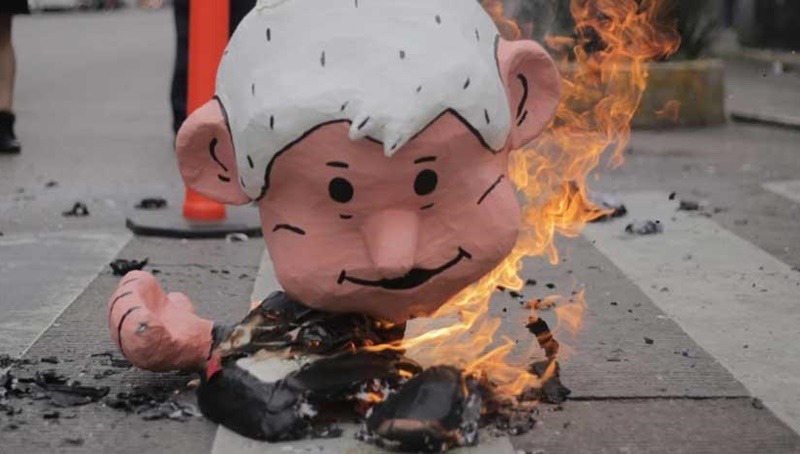 Durante su mañanera de este martes, el presidente López Obrador reprochó la quema de esta piñata por parte de los trabajadores, quienes tras las protestas también reprobaron lo ocurrido.