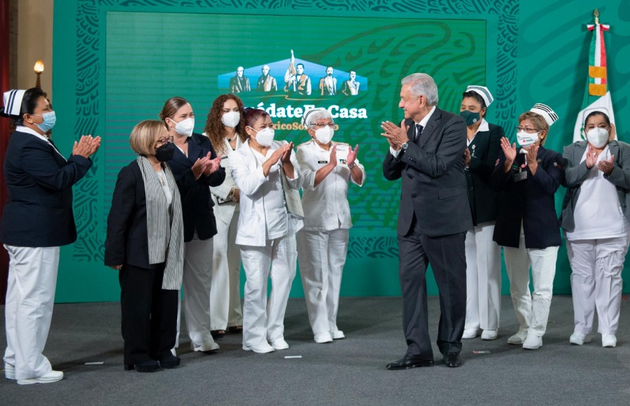 “Estamos gustosos de que se les entregue un reconocimiento simbólico a quienes están presentes y a todas las enfermeras en México nuestro abrazo, nuestra felicitación, nuestro reconocimiento, nuestro agradecimiento por su actitud humanista, fraterna, solidaria. Un abrazo a todas las enfermeras de México en nombre del gobierno que represento y creo que también lo puedo decir, en nombre de nuestro pueblo por todo lo que han hecho”, expresó.