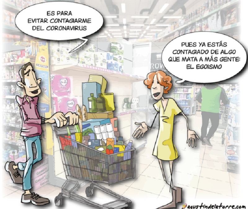 Las clases medias, asaltando materialmente los supermercados y almacenes, comprando todo lo que ellos creen que se va a acabar con la bomba nuclear del coronavirus.