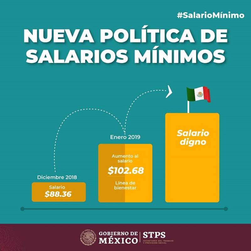 De acuerdo con registros oficiales, las revisiones salariales entre sindicatos y empresas han dado como resultado un aumento salarial, en promedio mensual, de 6 por ciento entre diciembre de 2018 y abril del presente año. Las revisiones salariales, en enero, tuvieron como referencia el aumento en el salario mínimo general de 16.2 por ciento y el correspondiente al de la frontera norte del país con el 100 por ciento.