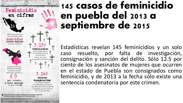 Y al respecto – a este asunto deberían de tomarlo más en serio diputados y senadores y más el presidente Peña, que parece no inmutarse ante los feminicidios -, la Comisión Nacional de los Derechos Humanos solicitó al Instituto Nacional de las Mujeres (Inmujeres) activar la alerta para que las autoridades del estado de Puebla cumplan con su responsabilidad de atender la violencia feminicida.