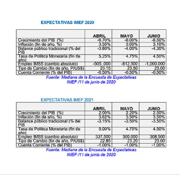 El amigo Carlos Chávez de Icaza, veterano amigo, divulgó este martes 16 de junio el tradicional documento de las expectativas del Instituto Mexicano de Ejecutivos de Finanzas que no deja lugar a ninguna duda de que muchas empresas han dejado en la calle y sin calzones a cientos de miles de trabajadores, que no encuentran sosiego con la cartera vacía y con la ineludible obligación de sobrevivir y alimentar a esposa e hijos, muchos muriendo de inanición. Así de grave es la situación atizada por el coronavirus.