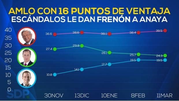 Pues si uno se atiene a la ventaja comparativa, enorme ventaja, de unos 15 puntos en promedio, hasta este jueves 15 de marzo, que le saca Andrés Manuel López Obrador al panista Ricardo Anaya Cortés y mucho más al colero José Antonio Meade Kuribreña, podríamos concluir que la elección presidencial está pactada con la realidad.