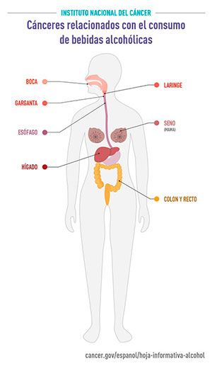 Otro dato aterrador: el alcohol aumenta el riesgo de cáncer en siete partes del organismo: la cavidad oral, la faringe, la laringe, el esófago, el colon y el recto, el hígado y la mama femenina.