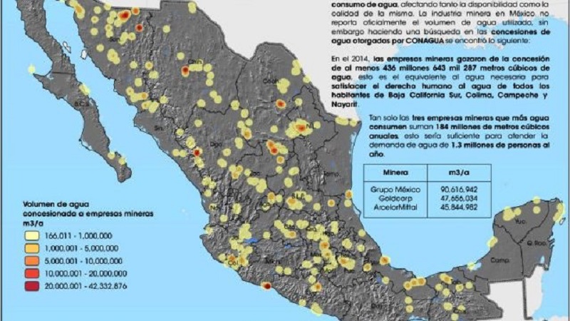 De acuerdo con Jean Jarab, en México hay unas 300 concesiones para la explotación de recursos mineros, que debían traducirse obviamente en beneficios para las comunidades indígenas que son las propietarias de las tierras donde se abren los socavones. Empero, la realidad muestra que hay daños al ambiente y a la economía de los pueblos originarios. Estos se convierten en extranjeros en sus propias propiedades que no pueden explotar porque los gobiernos del neoliberalismo se las arrebataron para entregárselas a extranjeros que vienen a explotar los valiosos recursos del subsuelo, entre los más valiosos el oro y la plata, pero también extraen carbón y productos radioactivos.