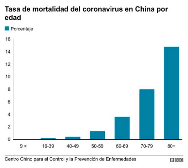 La tasa de mortalidad general, de acuerdo con el estudio más completo sobre el brote realizado por el Centro Chino para el Control y la Prevención de Enfermedades (CCDC), es de un 2.3%, siendo las personas mayores de 80 años las que corren más riesgo, con un índice de mortandad del 14.8%.