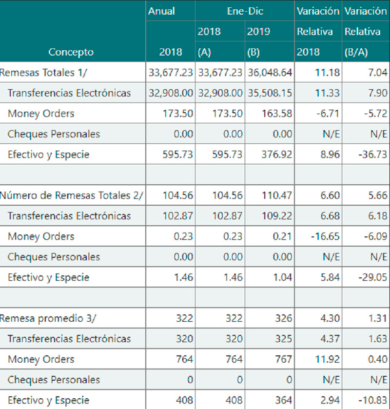 Y si vamos a comparaciones, lo que ingresó por remesas el año pasado fue poco más de 7 por ciento mayor que el ingreso de 2018.
