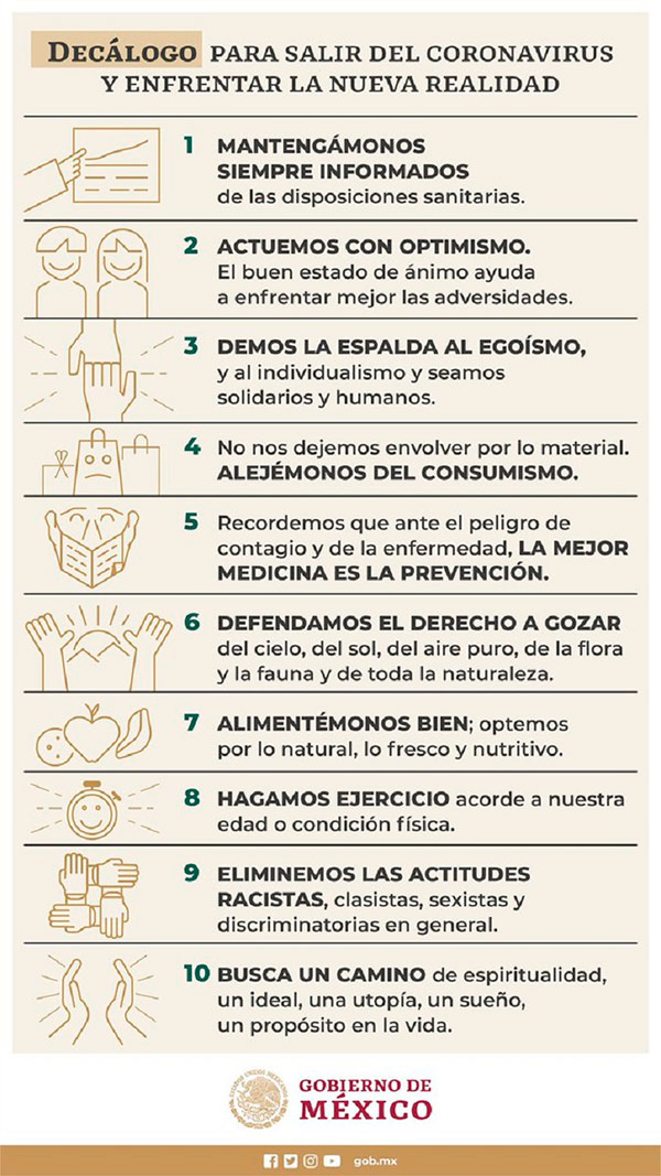 Que la reapertura será escalonada en la semana del 15 al 28 de junio. Sin embargo, los rebrotes no serán escalonados. El SARS-COV-2 no tiene razón. Agrede de boca a boca, de palabra a palabra, te puede contagiar con cualquier descuido.