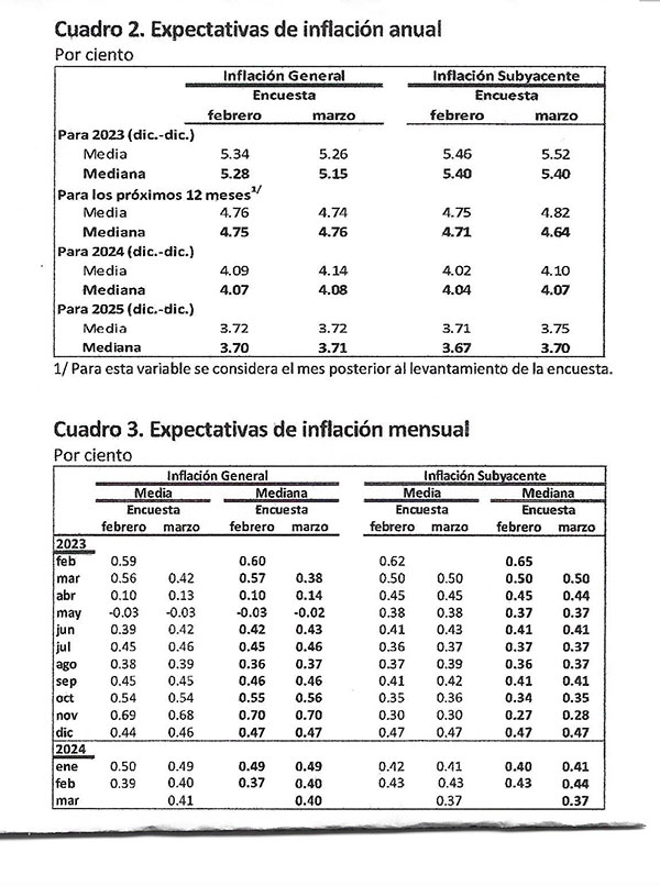 Las expectativas de inflación general para el cierre de 2023 se revisaron a la baja con relación al mes anterior, al tiempo que, para los próximos 12 meses se mantuvieron en niveles similares.
