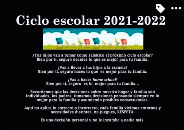 Y estoy de acuerdo en que hay que reabrir los centros escolares porque si no se abren ahora, no se reabrirán nunca porque no hay ninguna certeza del final de la pandemia. Lo único cierto es que hay que toma las medidas sanitarias necesarias para mantener abiertos los centros escolares y evitar un daño continuo al aprendizaje y bienestar de los estudiantes, como dice el organismo de la ONU para la infancia.