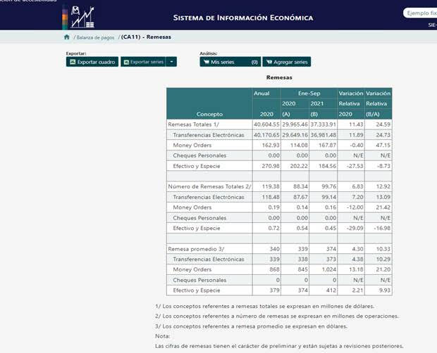 En medio de todo, mi madre como un dios: Las remesas continúan siendo uno de los poderosos motores de la incipiente recuperación. De enero a septiembre crecieron casi 25%. De 30 mil millones de dólares (números cerrados) a 37 mil millones. Las remesas totales sumaron en septiembre 4 mil 403 millones de dólares.