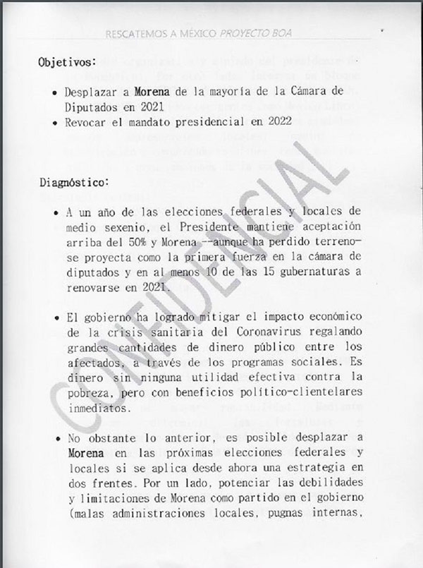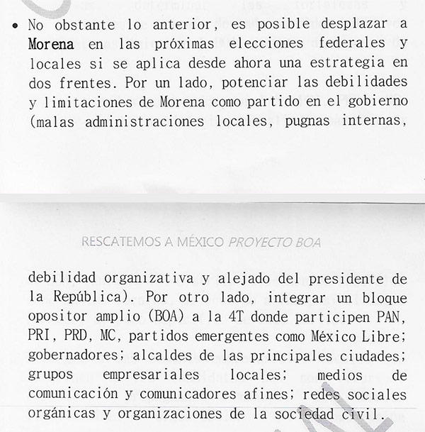 Al presidente, “alguien” le entregó un documento que revela la presunta estrategia de comunicación y de lucha de sus enemigos políticos, en donde están todos menos él y Morena; están integrantes de las derechas, grupos ultraconservadores del empresariado, partidos políticos de derecha y de algunos grupos que se autocalifican de izquierdistas.