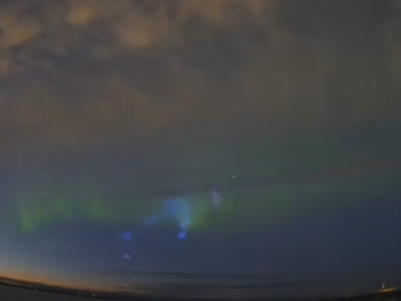 Este desprendimiento provocó nubes luminosas blancas y verdes en el cielo que fueron progresivamente eclipsando la aurora boreal «real» que brillaba en el horizonte.