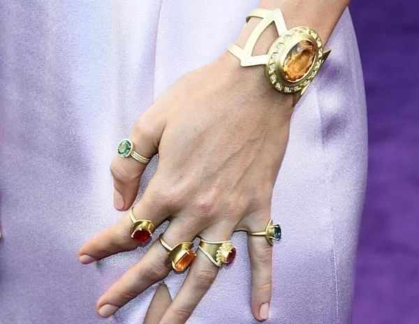 Scarlett Johansson (Black Widow) también usó un brazalete que hacía alusión al guantelete del infinito.
