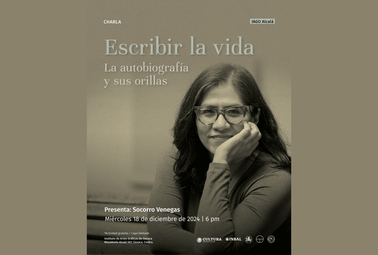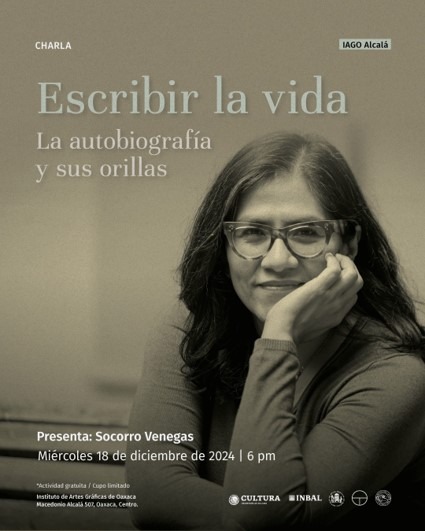 El próximo miércoles 18 de diciembre, a las 18 horas, el Instituto de Artes Gráficas de Oaxaca ofrecerá una charla con la escritora Socorro Venegas.