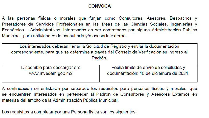 Y es que el pasado jueves 4 de noviembre de 2021, en la Gaceta Extraordinaria No. 440 con folios 1319 y 1320 se publicaron las convocatorias para el ingreso al Padrón de Consultores y Asesores Externos en materias del ámbito de la administración pública municipal del Instituto Veracruzano de Desarrollo Municipal y el Reglamento para el registro, control, evaluación y certificación del padrón de consultores y asesores externos en materias del ámbito de la administración pública municipal del Instituto Veracruzano de Desarrollo Municipal.