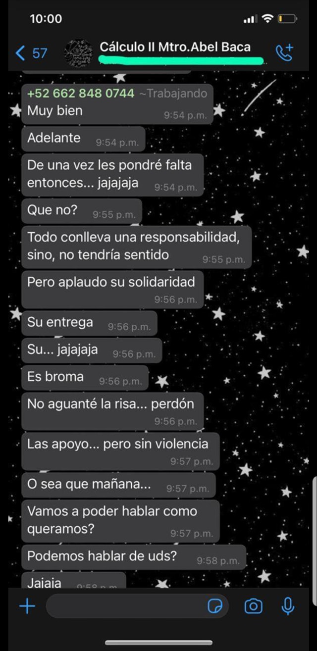 “Hoy va haber una manifestación de mujeres que supuestamente son agredidas… que esto, que esto, y que más… Nada más les digo algo a ustedes, las desgracias no llegan sin causa, nada más aclaro eso”, expresó el maestro a sus estudiantes.
