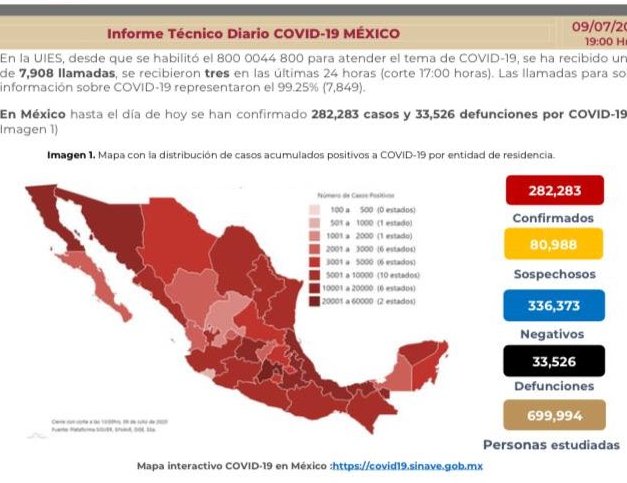 Ciudad de México. Índice Político.- La Secretaría de Salud dio a conocer este jueves que suman 282 mil 283 casos...