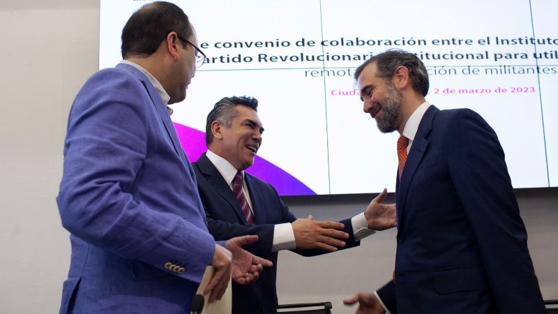 El convenio fue firmado por el presidente del Comité Ejecutivo Nacional (CEN) del PRI, Alejandro Moreno, y el presidente del Consejo General del órgano electoral, Lorenzo Córdova.