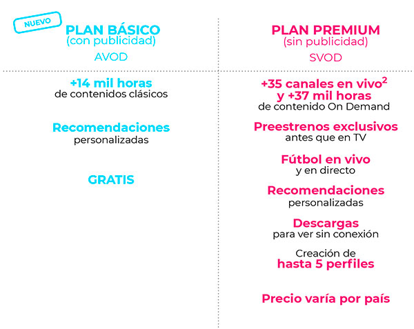 Así, al modelo SVOD de blim tv, ahora Plan Premium, que lleva casi seis años dando servicio de entretenimiento en modalidad On Demand a las audiencias de América Latina1, se suma un nuevo plan básico con publicidad que busca atender las necesidades de nuevas audiencias: