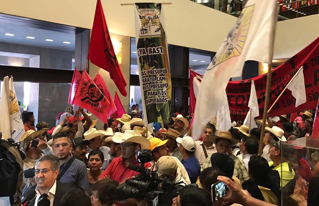 CIUDAD DE MÉXICO, 27 de abril (AlmomentoMX).-Campesinos del Frente Auténtico del Campo (FAC) tomaron las sedes de las Secretarías de Relaciones Exteriores y de Comunicaciones y Transportes en la ciudad de México. La primera, por acuerdos incumplidos del secretario Luis Videgaray y la segunda en demanda de atención a los propietarios afectados por la construcción del nuevo aeropuerto capitalino.