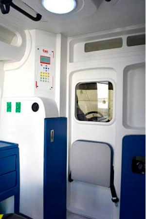 Cada vehículo cuenta con piso plástico con acabado epóxico y sello en uniones de las paredes, gavetas para resguardo de materiales de uso paramédico, banca abatible que resguarda equipo de rescate, iluminación interior para atención médica y general, así como iluminación exterior tipo escena y sistema de oxígeno medicinal.