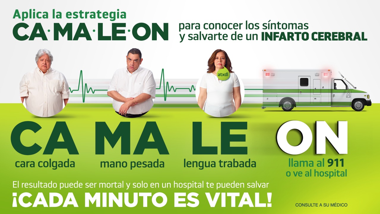 En ese sentido, el Dr. Javier Saavedra Uribe, Presidente de la SMME, destacó el rol fundamental que tiene la Estrategia “CAMALEÓN” con la que, a través de un acrónimo de fácil recordación, la gente ha podido reconocer los signos y síntomas del infarto cerebral. “El año pasado iniciamos una difusión muy fuerte para permear la estrategia en la sociedad y hoy tenemos el agrado de presentar una nueva imagen que tiene tres objetivos fundamentales: 1. Simplificar el entendimiento con un lenguaje más coloquial; 2. Generar conciencia para que los afectados vayan sin demora a un hospital o llamen al 9-1-1 y 3. Incrementar el conocimiento de la enfermedad con un enfoque preventivo”.
