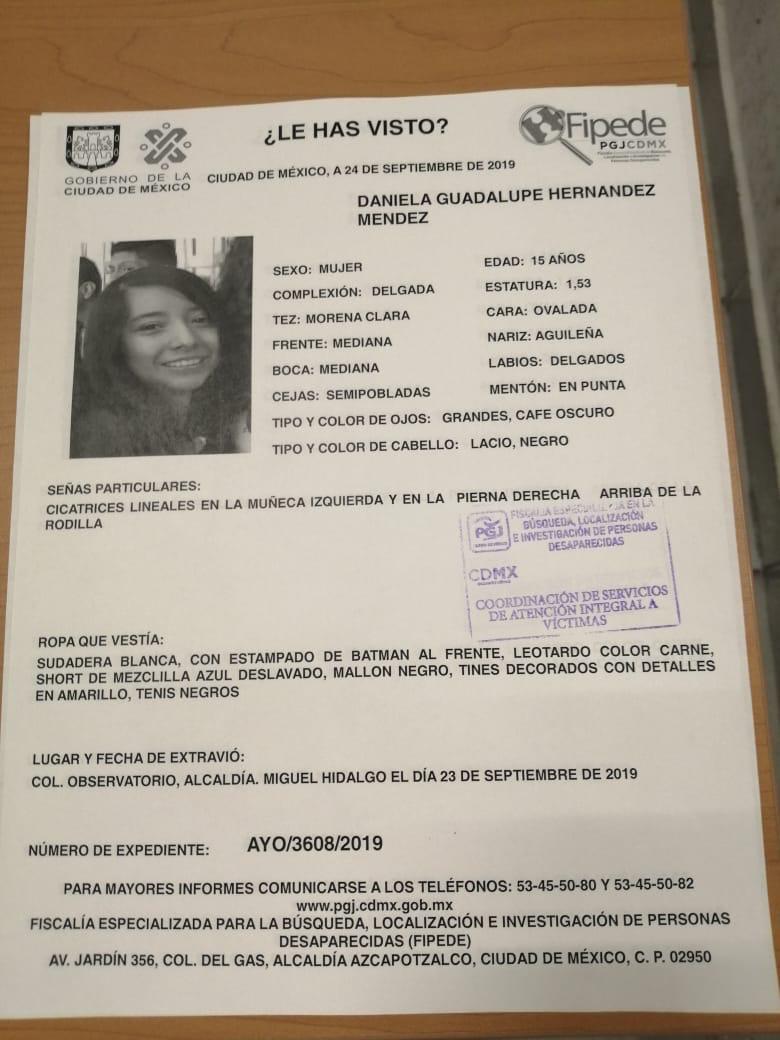 Leer másDetailsEn redes sociales se ha elevado un llamado de ayuda para la localización de la adolescente Daniela Guadalupe Hernández Méndez,...