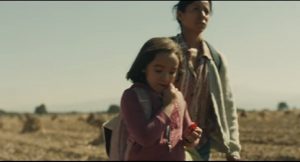 En el clip se puede ver a una niña y a su madre, que hablan español, en un recorrido por terrenos desérticos, cerca de un río y a bordo de un tren.