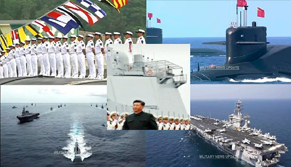 China tiene 350 equipos de guerra acuática desde porta aviones y submarinos hasta corbetas y destructores. EUA tiene 293 aunque por el momento aún es superior en número de porta aviones y submarinos nucleares de largo alcance.