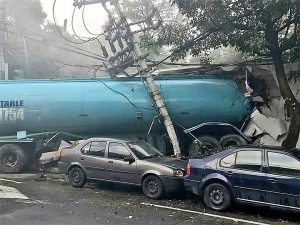 CIUDAD DE MÉXICO, 26 de septiembre (AlmomentoMX).- Esta tarde se registró un fuerte choque entre una pipa de agua y otros vehículos que quedaron involucrados en el accidente sobre la avenida Constituyentes a la altura de la calle Gelati en la colonia San Miguel Chapultepec.