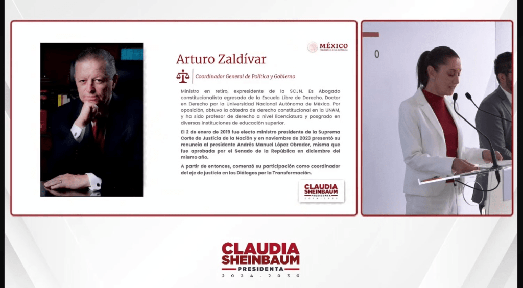 Zaldívar, quien se mostró honrado y emocionado por su nombramiento, será responsable de dar seguimiento a las reformas constitucionales, con un enfoque particular en la reforma del Poder Judicial. El ministro en retiro señaló que trabajará en estrecha colaboración con el próximo jefe de Oficina de la Presidencia, la secretaria de Gobernación y la consejera Jurídica de la Presidencia para garantizar la implementación efectiva de estas reformas.