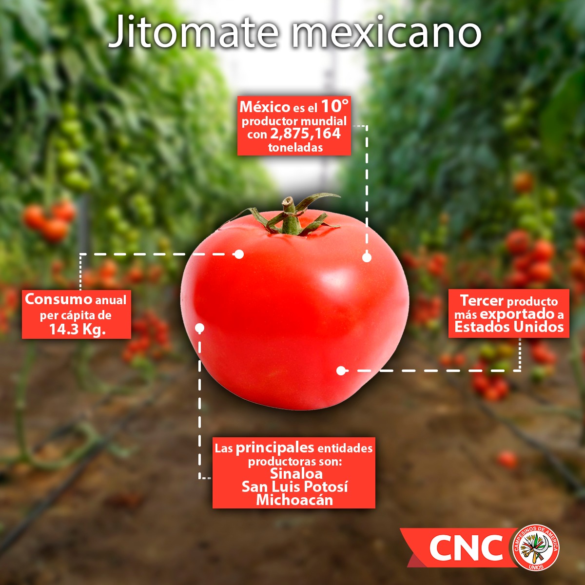A la fecha, el 80 por ciento de la producción del jitomate mexicano se exporta a Estados Unidos, convirtiéndose en el tercer producto más importante en las exportaciones agroalimentarias de México, después de la cerveza y el aguacate.