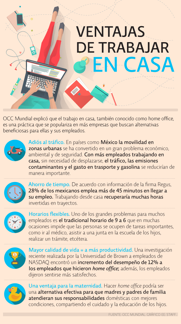 En ese contexto, Erika Villavicencio, coordinadora de Psicología Organizacional de la Facultad de Psicología de la UNAM, da algunas recomendaciones para un Home Office exitoso: “Hoy más que nunca se tiene que repensar en el diseño de los puestos de trabajo, en la gran mayoría (casi el 70 por ciento del trabajo) ya puede realizarse vía remota. Recordemos que desde junio del año pasado hubo una reforma que incluye el teletrabajo (home office) como uno de los derechos de los trabajadores”.