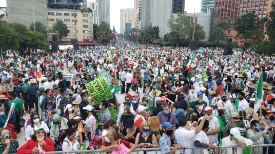 Índice Flamígero: Integrantes del Frente Nacional Anti AMLO (FRENAAA) se manifestaron este domingo 21 de marzo en contra de la administración que encabeza Andrés Manuel López Obrador. “Fuera López, fuera López. Fuera la dictadura. Viva la libertad”, fueron parte de las consignas de los asistentes, quienes marcharon desde el Ángel de la Independencia y avanzaron sobre Paseo de la Reforma hasta el Monumento a la Revolución. Dicha convocatoria tuvo como objetivo un juicio civil en contra del presidente que se realizó en la explanada del Monumento a la Revolución.